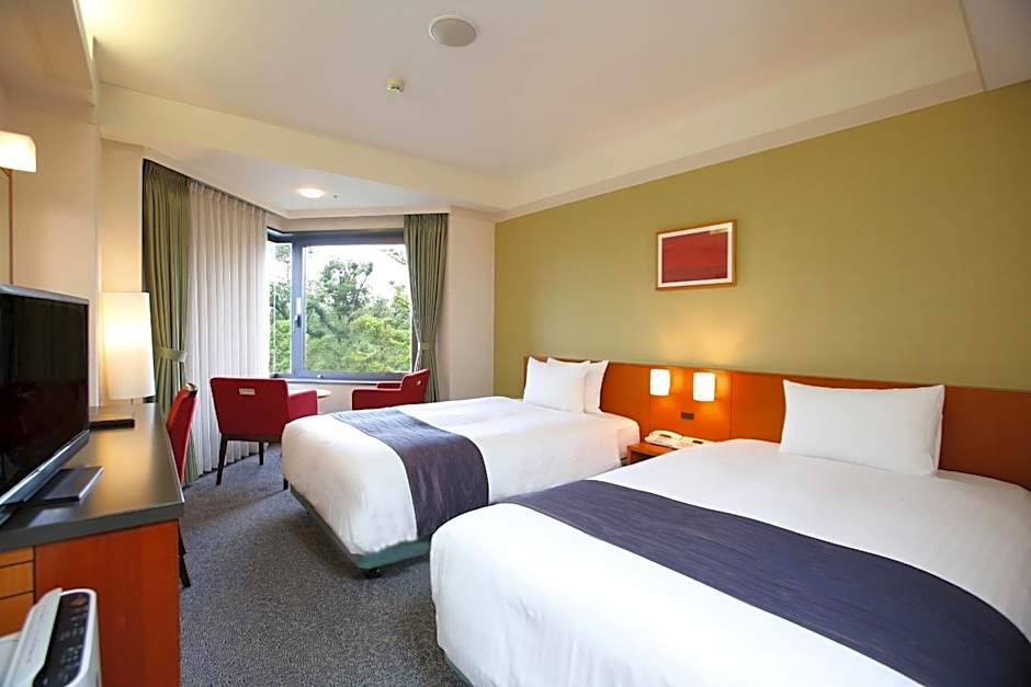 Room faces the Kyoto Imperial Palace. Air-conditioned room fitted with an LCD TV with satellite channels, a fridge and a green-tea maker. This is a nonsmoking room.